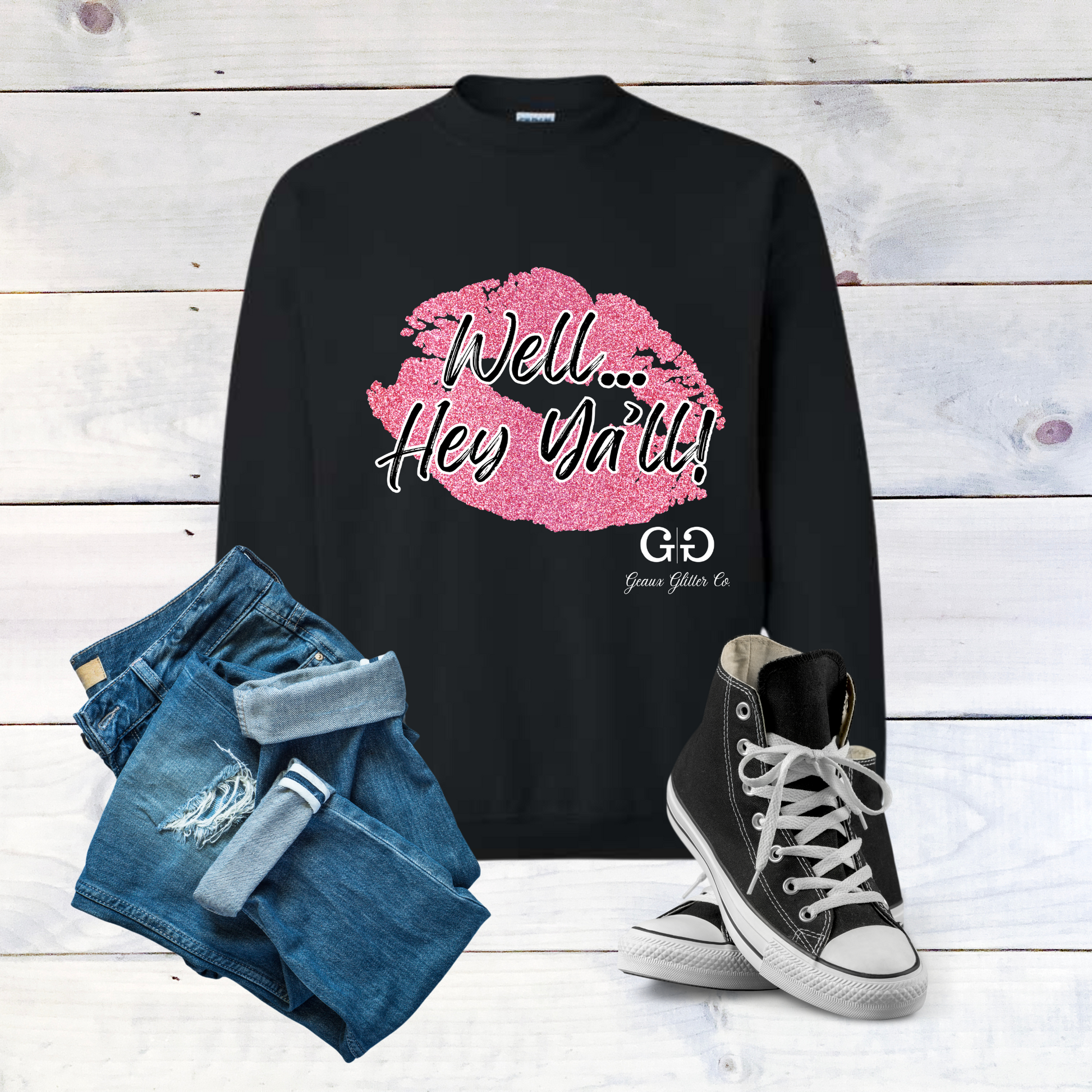 Geaux Glitter Co. Well...Hey Ya'll Sweatshirt